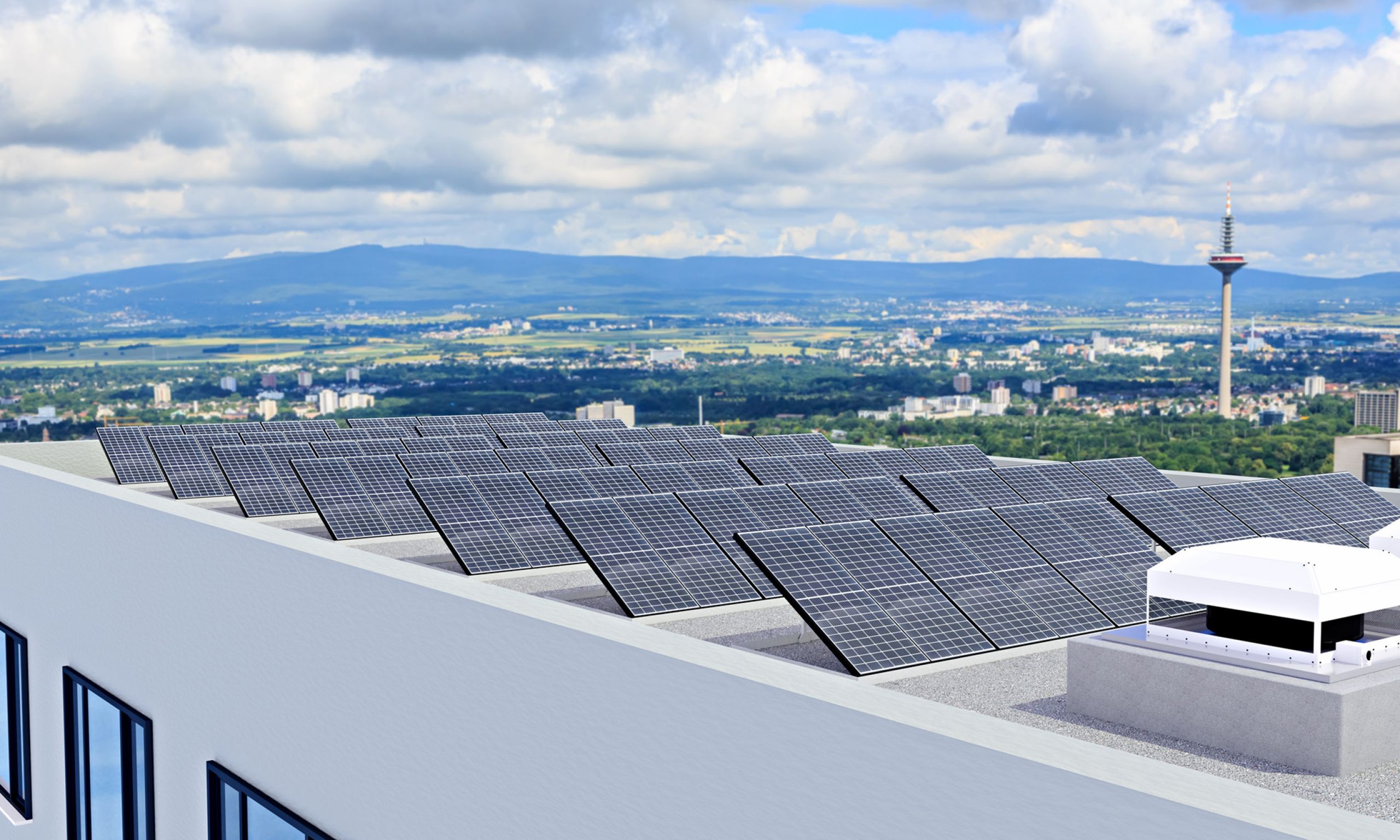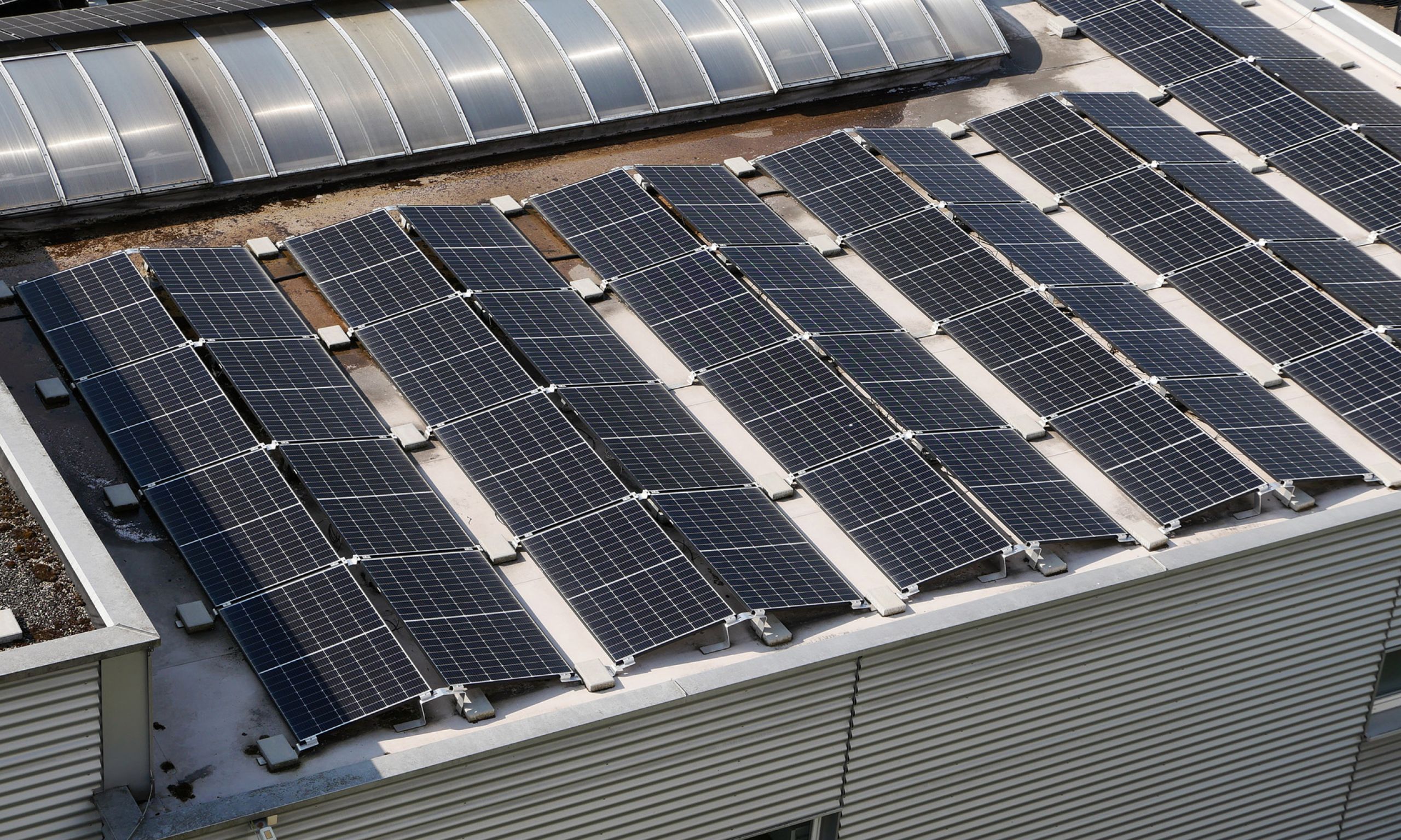 In vielen Fällen bieten große Dachflächen von Industrie-/Bürogebäuden oder Lagerhallen, großzügige, unverschattete Bereiche, die sich optimal für die Installation von Photovoltaikmodulen eignen.